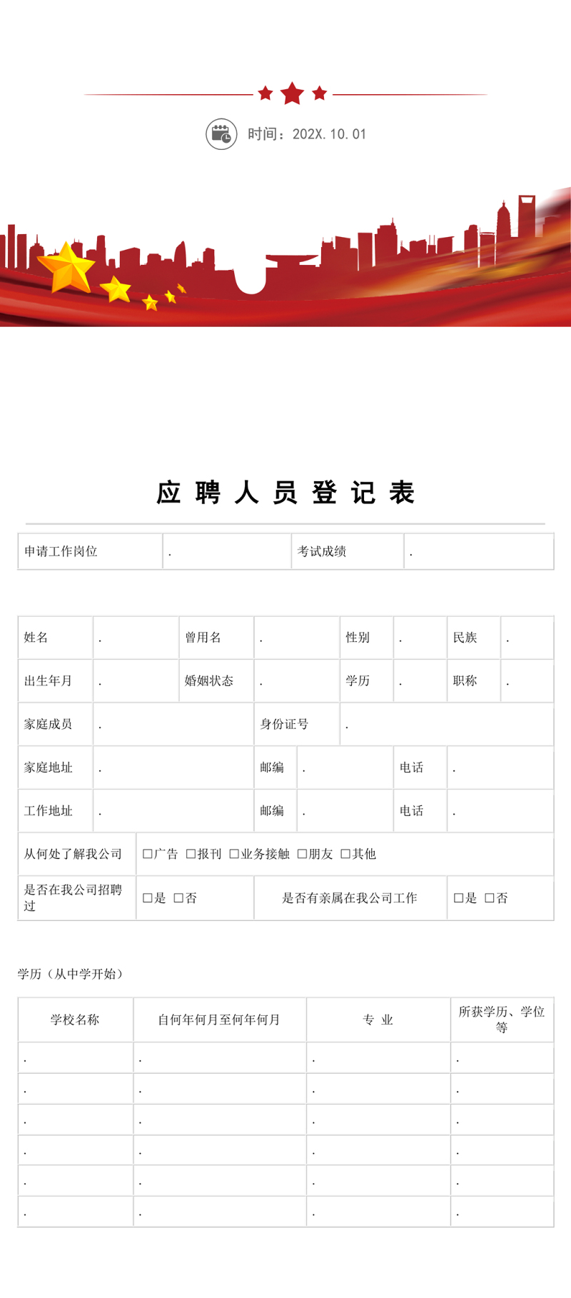 简约应聘人员登记表模板,word文档,下载,word,白色,免费模板,word格式,公司文档,文件,合同,打印合同,电子文档,word模板,商务,商务文档,简洁大方,可编辑文档,应聘人员登记表