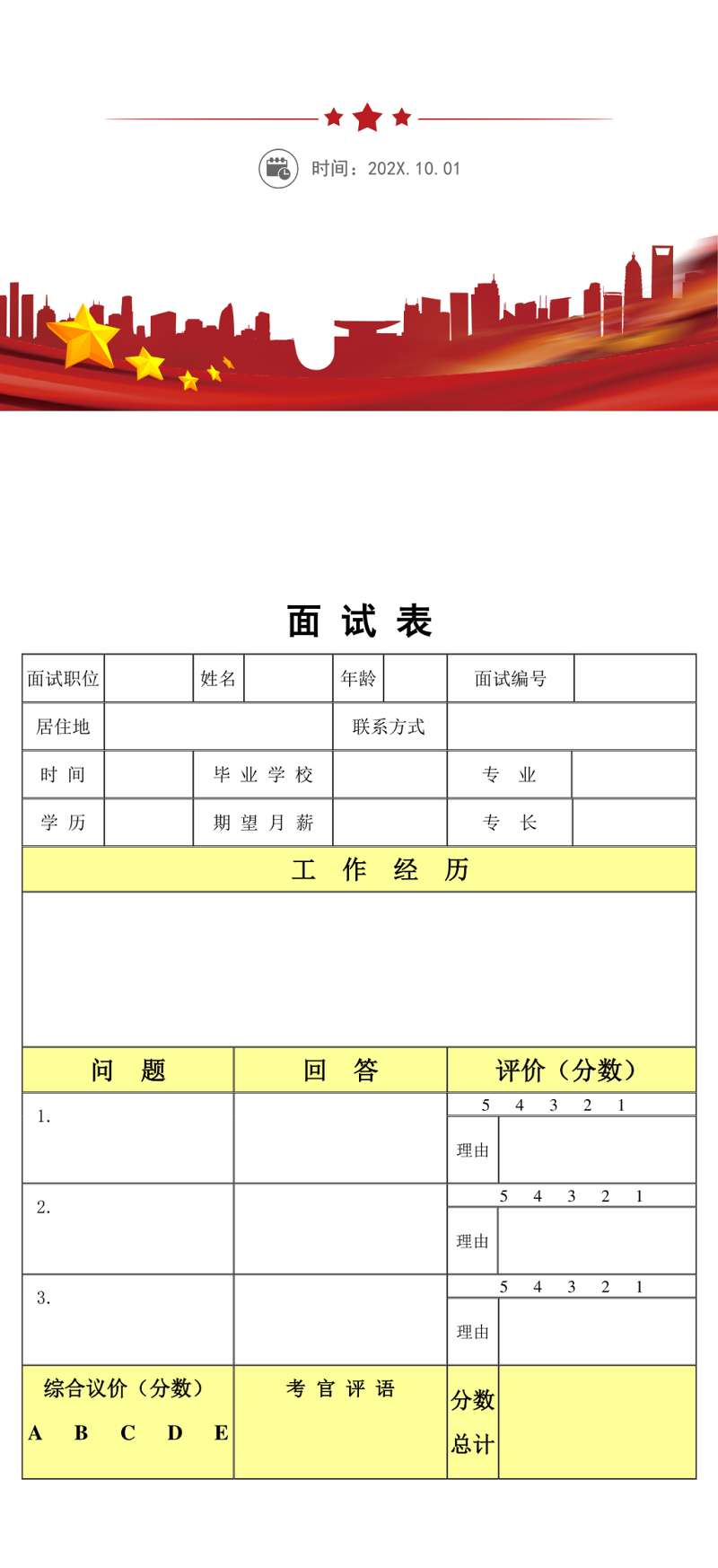 办图网提供简洁通用面试表模板供会员免费下载,作品支持软件Word ,格式为doc/docx。更多精彩人事素材,尽在办图网。