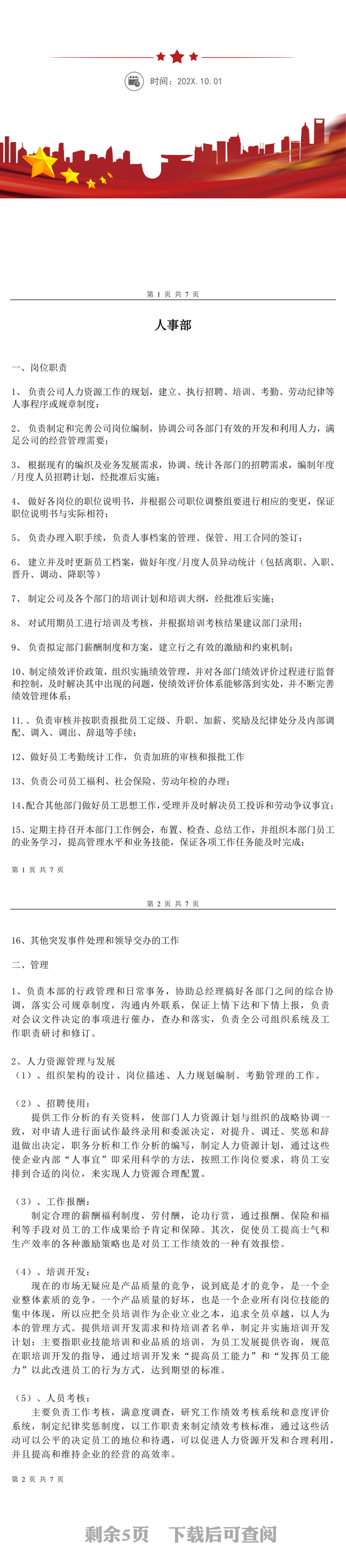 办图网提供公司人事部岗位职责制度WORD文档供会员免费下载,作品支持软件Word ,格式为doc/docx。更多精彩人事素材,尽在办图网。