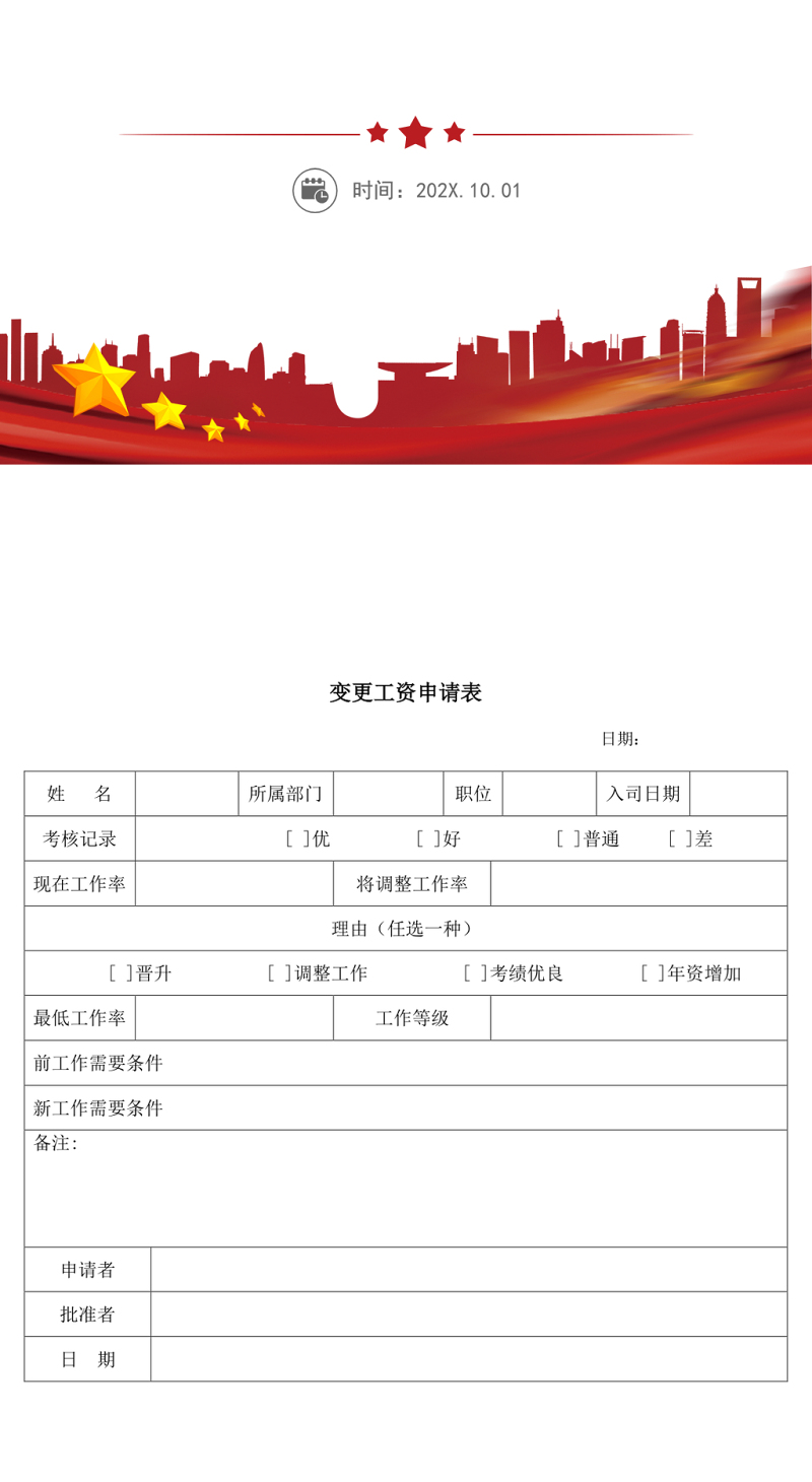 变更工资申请表模板