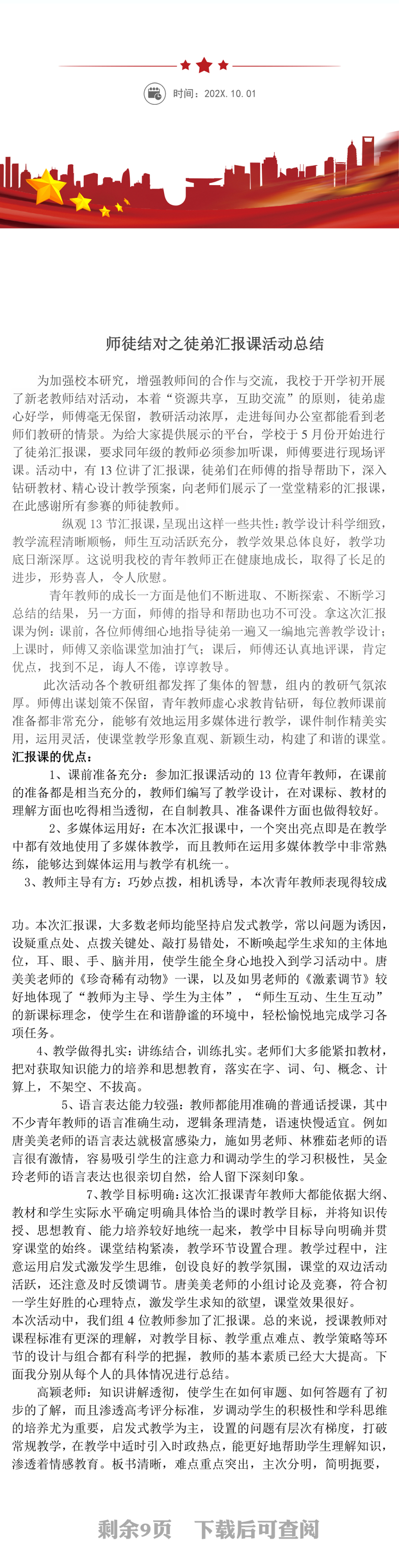 办图网提供师徒结对之徒弟汇报课活动总结供会员免费下载,作品支持软件Word ,格式为doc/docx。更多精彩总结素材,尽在办图网。