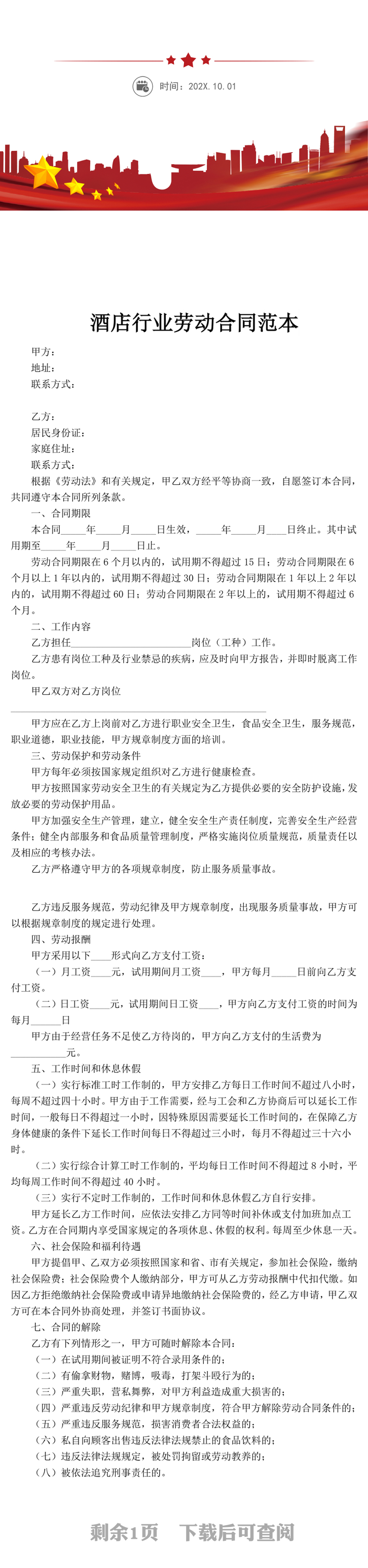 酒店行业劳动合同范本,word文档,下载,word,白色,免费模板,word格式,公司文档,文件,合同,打印合同,电子文档,word模板,商务,商务文档,简洁大方,可编辑文档,劳动合同,合同模板