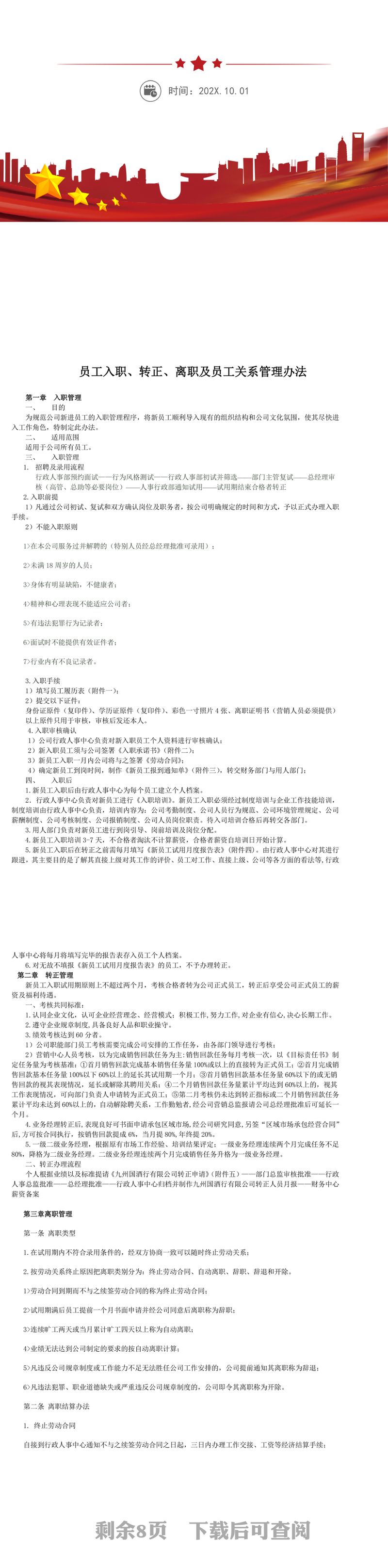 入职与转正离职管理规定WORD文档,高清DOC图片设计素材,1920x1080:0DPI,入职与转正,离职管理规定,WORD文档,办公专用文件,小清新风格,简单背景,内容为可修改编辑,简洁风格,A4打印文档,word,文档,管理制度,财务,凭证单据,财务规章制度,行政,人事