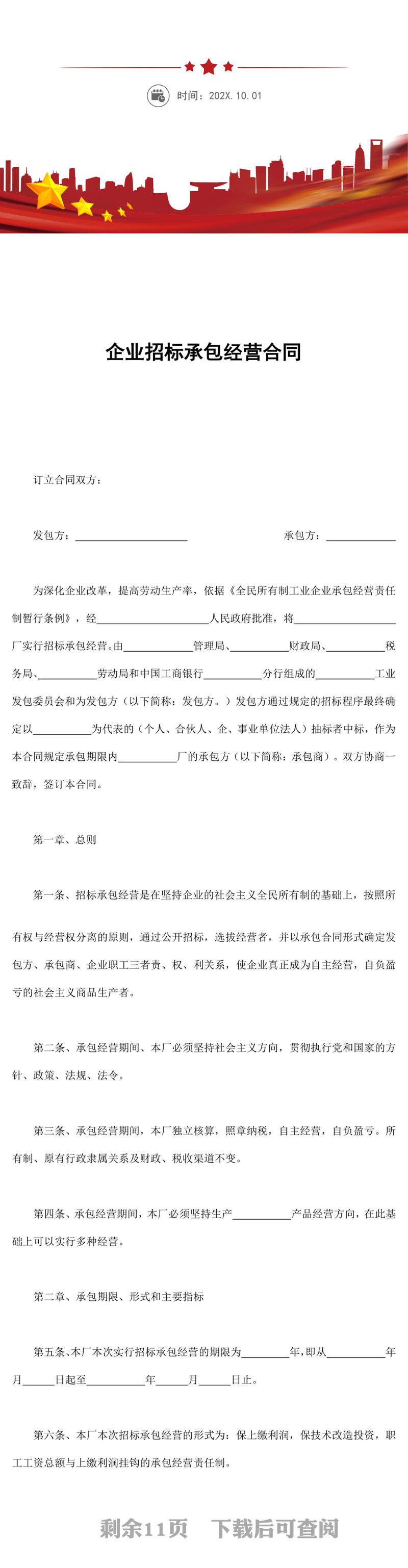 办图网提供企业招标承包经营合同供会员免费下载,作品支持软件Word ,格式为doc/docx。更多精彩合同素材,尽在办图网。