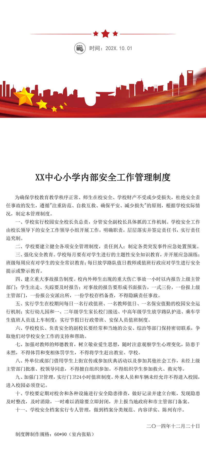 学校内部安全工作管理制度,高清DOC图片设计素材,1920x1080:0DPI,XX中心小学内部安全工作管理制度,学校实行校园安全校长负总责,学校要建立健全各项安全管理制度