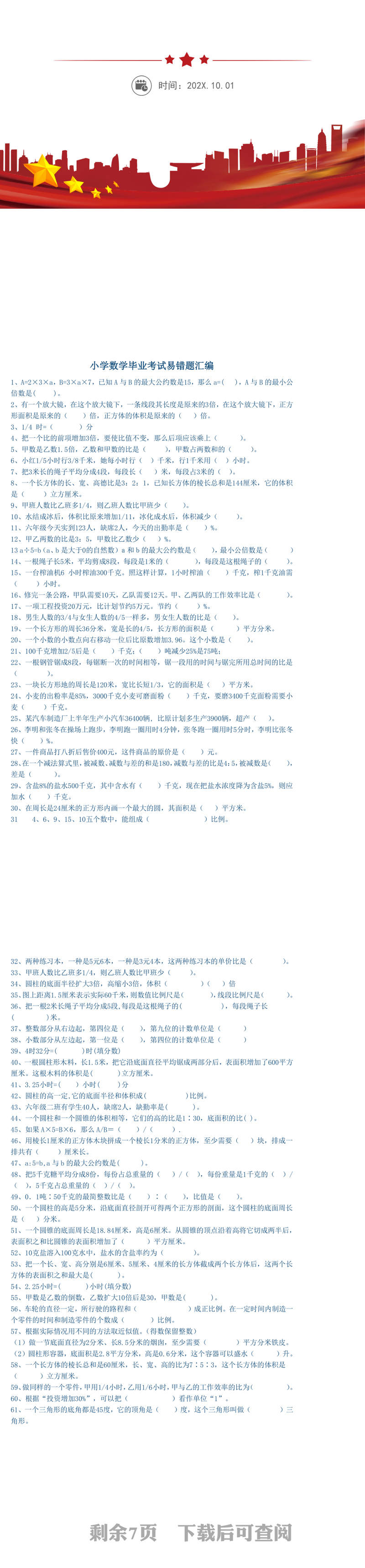 办图网提供小学数学毕业考试易错题汇编供会员免费下载,作品支持软件Word ,格式为doc/docx。更多精彩学校相关素材,尽在办图网。