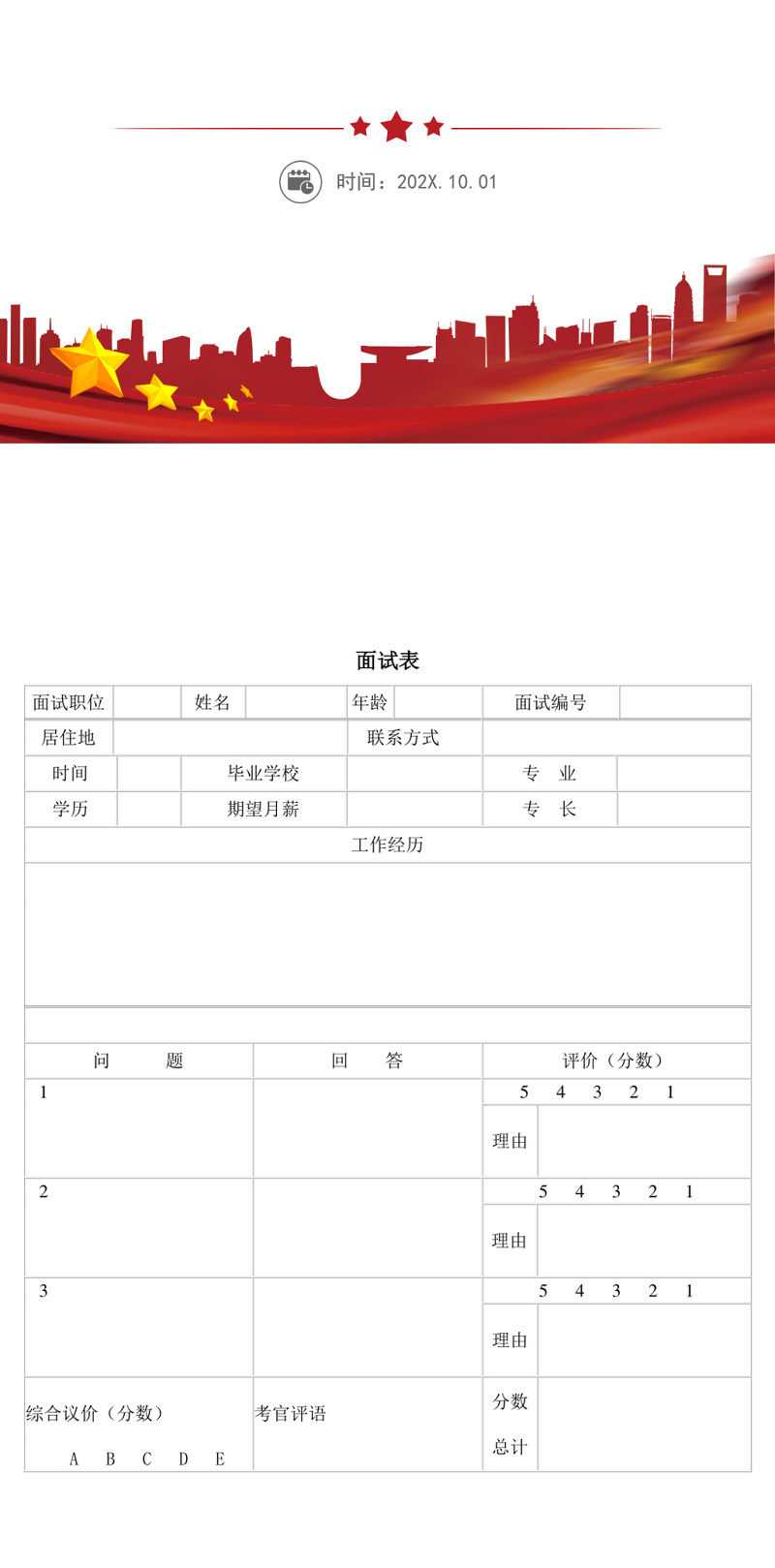 办图网提供面试表word模板供会员免费下载,作品支持软件Word ,格式为doc/docx。更多精彩人事素材,尽在办图网。