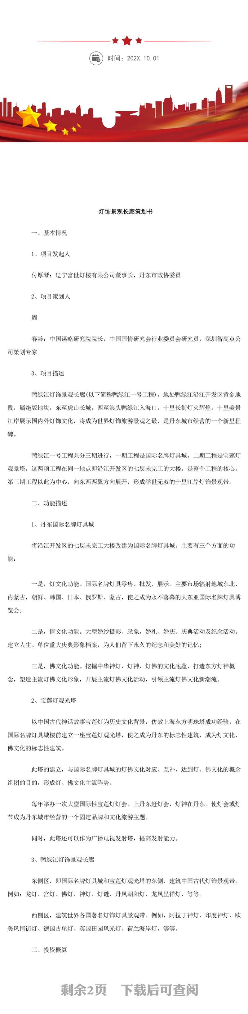 办图网提供灯饰景观长廊策划书供会员免费下载,作品支持软件Word ,格式为doc/docx。更多精彩市场/公关素材,尽在办图网。