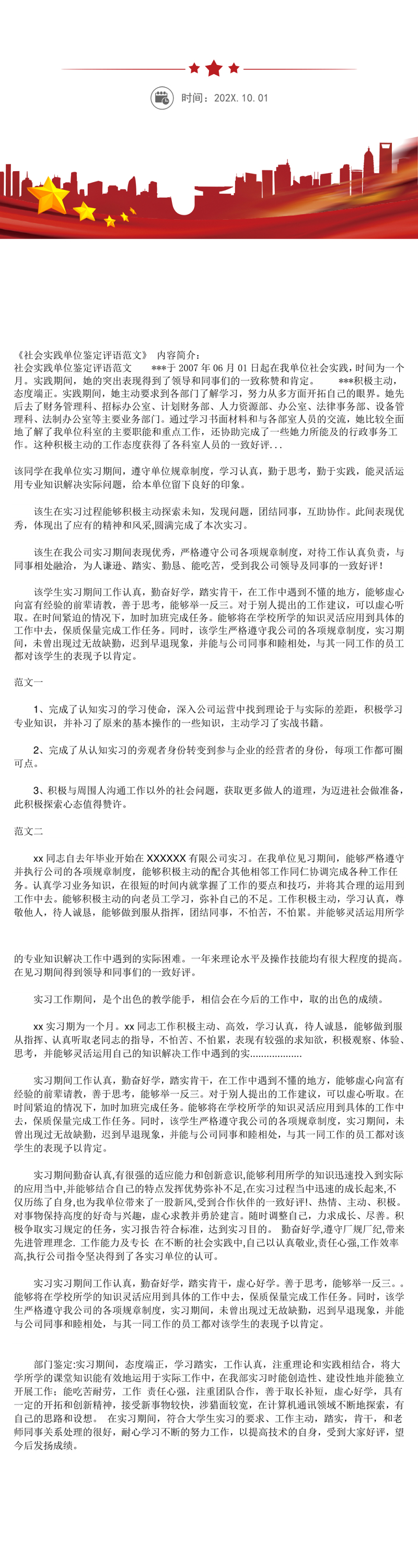 社会实践单位鉴定评语范文,销售实习单位意见,社会实践单位鉴定评语汇总,实习单位意见范文,单位实习报告评语