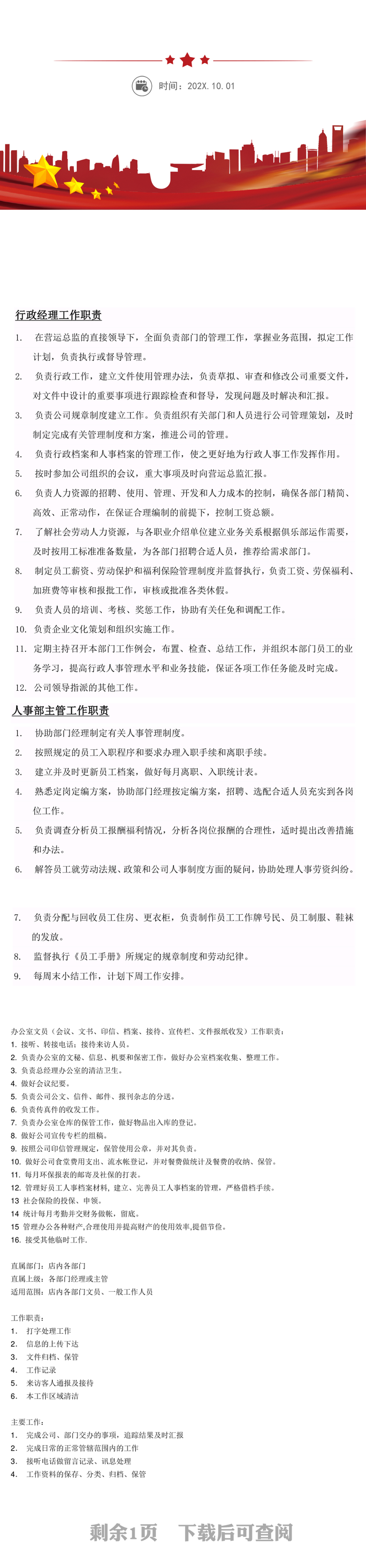 办图网提供行政人事部经理工作职责供会员免费下载,作品支持软件Word ,格式为doc/docx。更多精彩人事素材,尽在办图网。