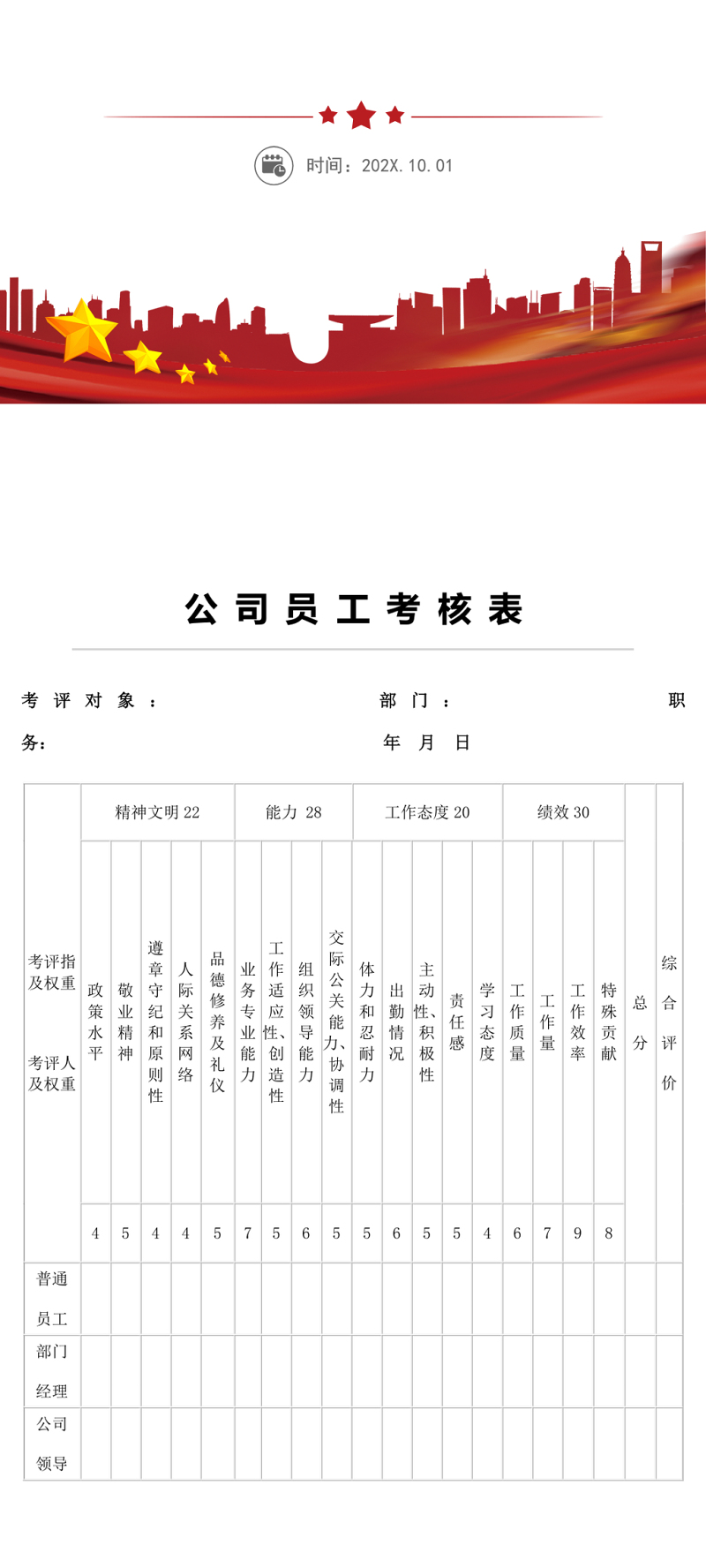 简洁公司员工考核表模板
