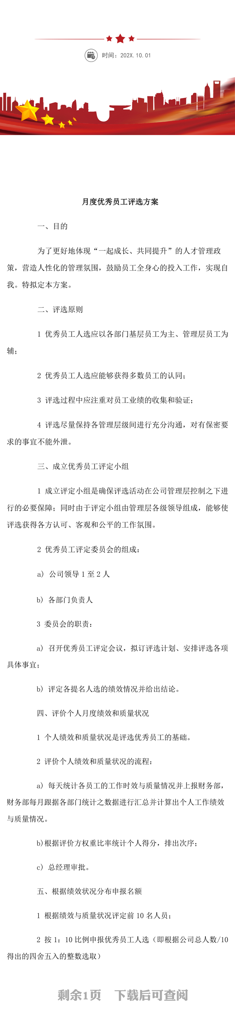 月度优秀员工评选方案,月度优秀员工评选制度,月度优秀员工评选标准,月度优秀员工评选办法,月度优秀员工评选表