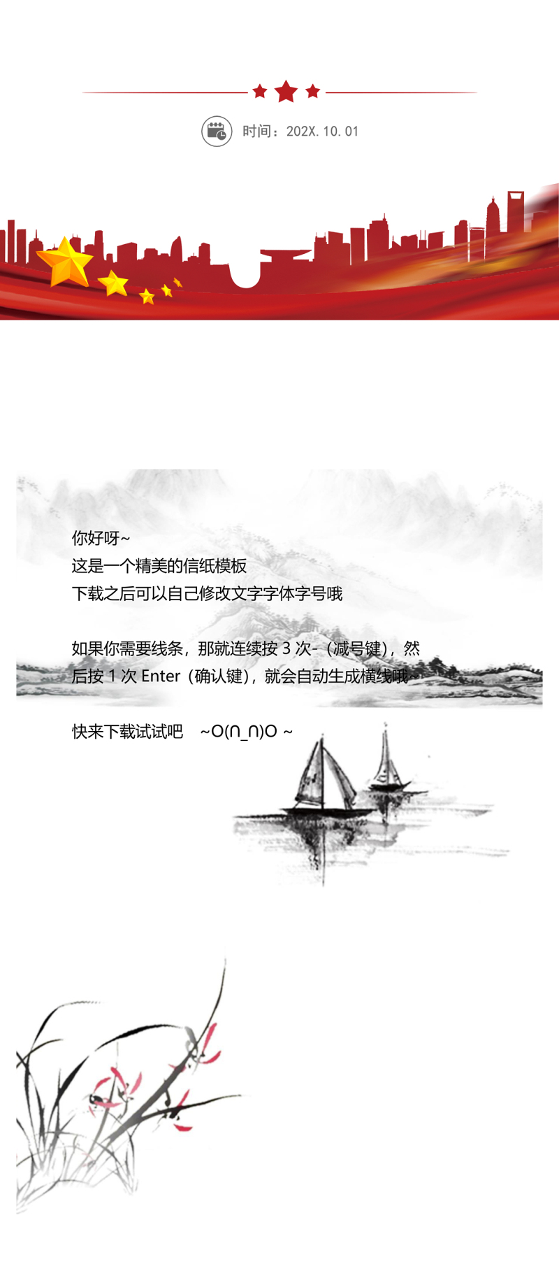 清新中国风背景信纸word模板