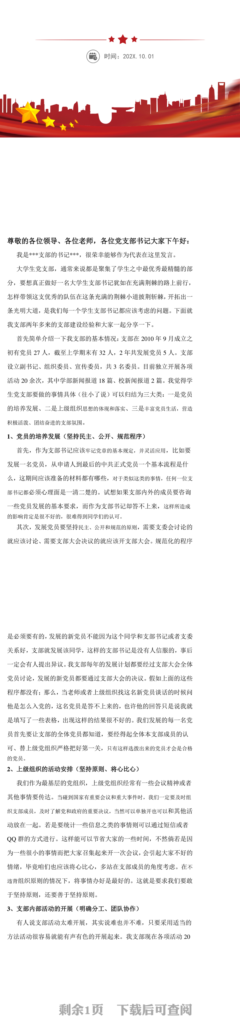 办图网提供优秀党支部书记发言稿供会员免费下载,作品支持软件Word ,格式为doc/docx。更多精彩党政机关素材,尽在办图网。