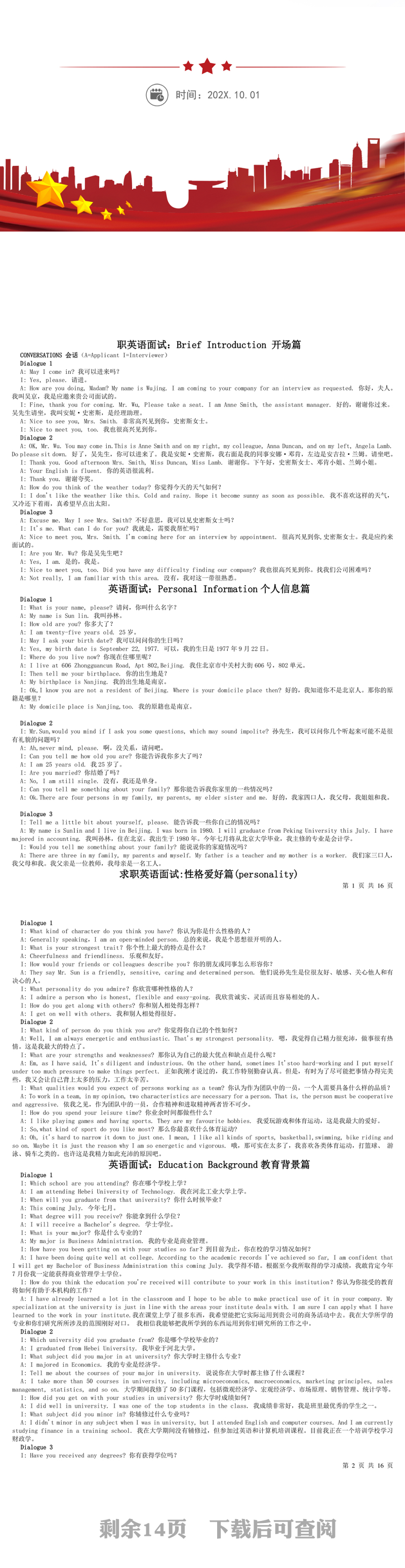 办图网提供英语工作面试对话供会员免费下载,作品支持软件Word ,格式为doc/docx。更多精彩人事素材,尽在办图网。