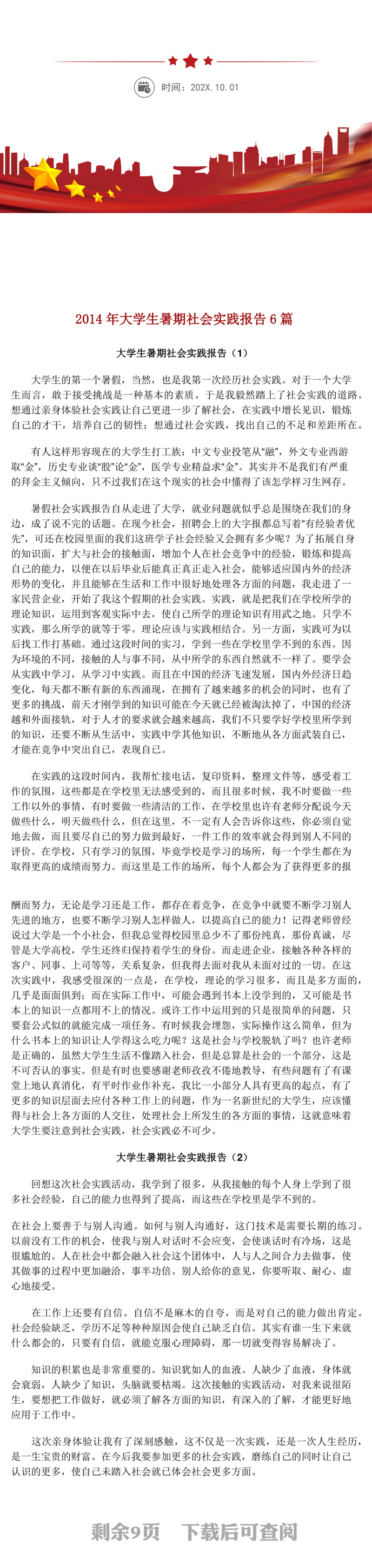 办图网提供2014年大学生暑期社会实践报告6篇供会员免费下载,作品支持软件Word ,格式为doc/docx。更多精彩报告素材,尽在办图网。