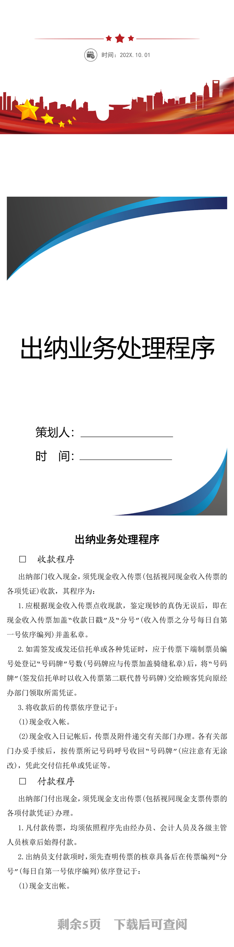 办图网提供出纳业务处理程序供会员免费下载,作品支持软件Word ,格式为doc/docx。更多精彩财务素材,尽在办图网。