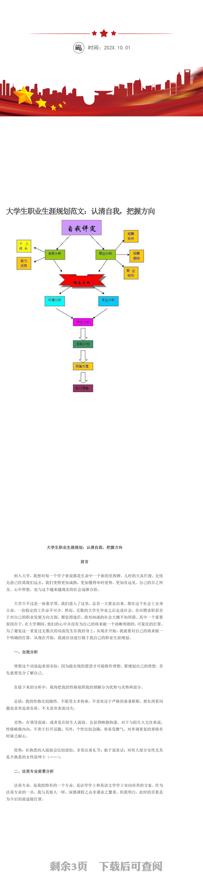 办图网提供大学生职业生涯规划word范文供会员免费下载,作品支持软件Word ,格式为doc/docx。更多精彩学校相关素材,尽在办图网。